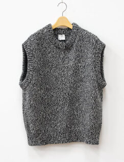 ウールとコットンを撚り合わせた、ローゲージのニットベスト。