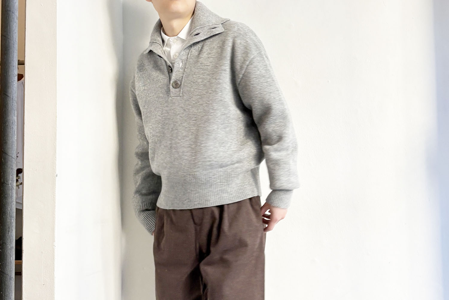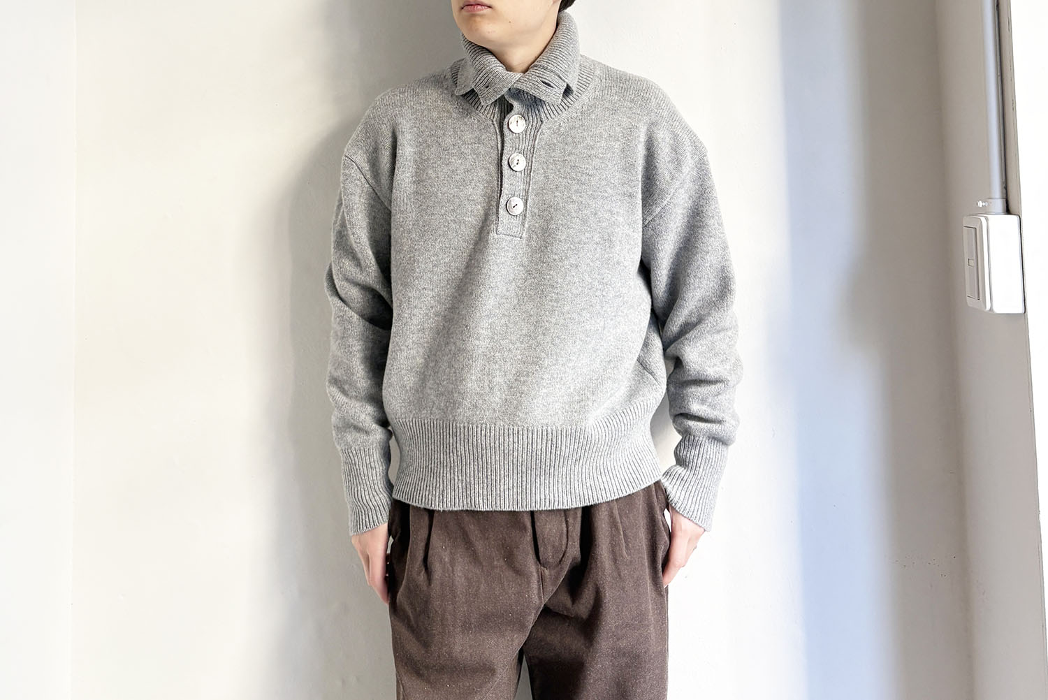 ポロ、ハイネック、タートルまでボタンの留め具合で表情がガラリと変わります。