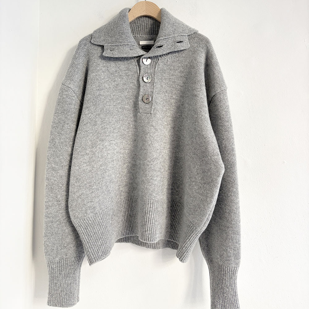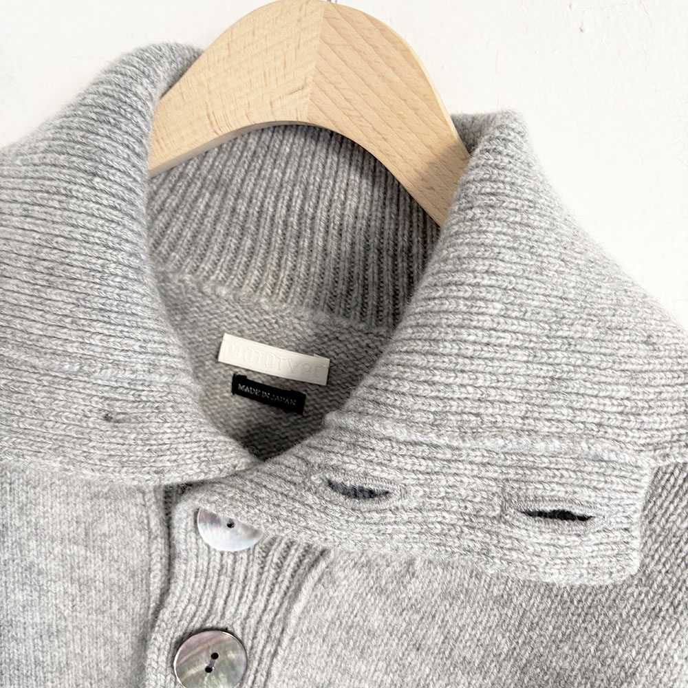 大きなシェルボタンの存在感はまるでこのニットの為に生まれて来たような相性です。