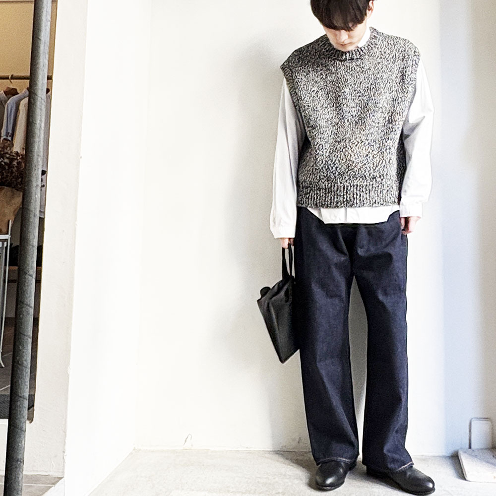 そこに藍染めや独特な洗いが加わることでシンプルながら他にはない存在感を醸し出しています。