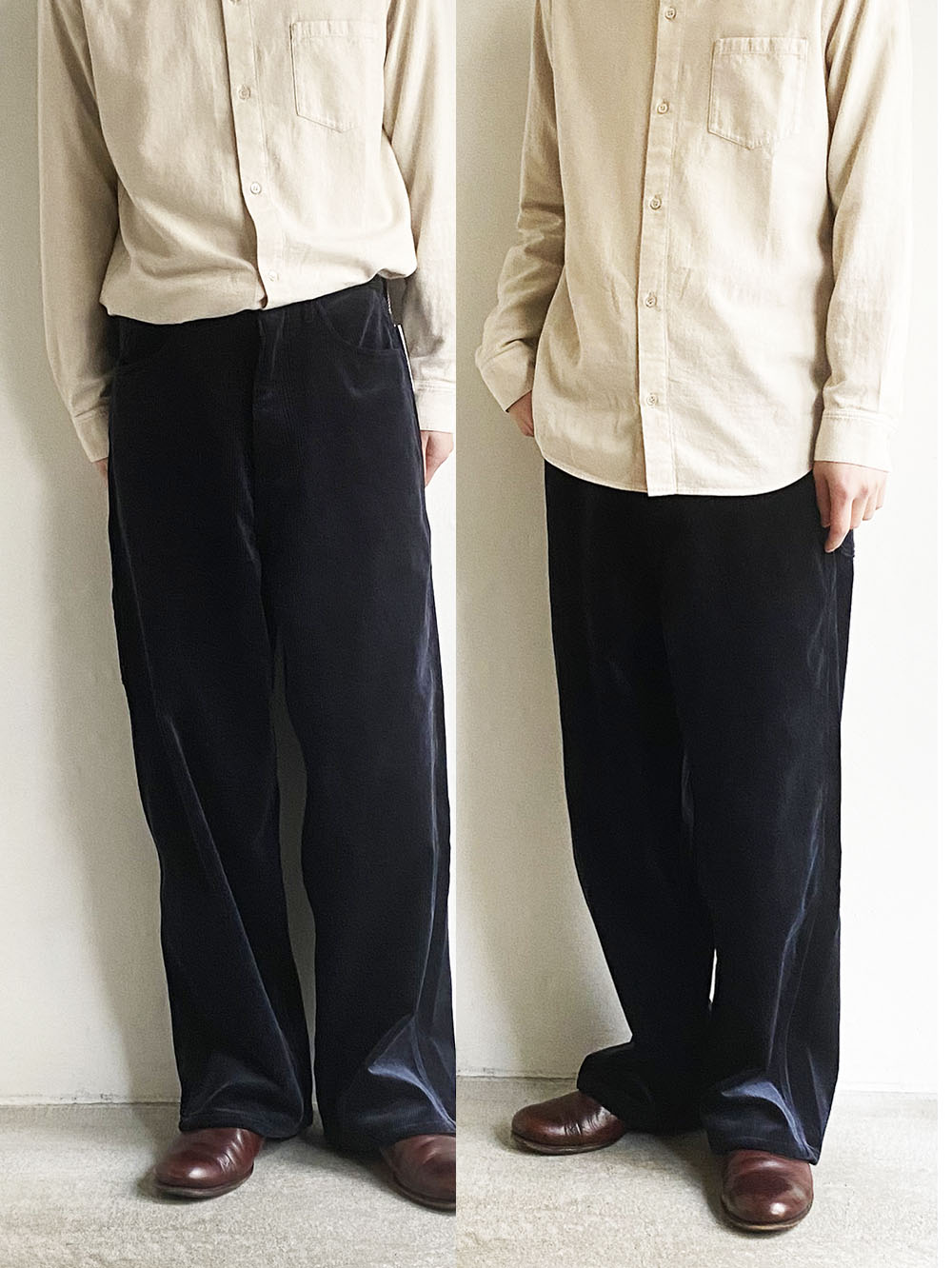 通常はややシッカリ感があるコーデュロイ ですがこちらはしなやかさも相まって落ち感が絶妙です。
