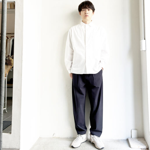太めのシルエットですがタックが入ることで綺麗なラインが表現されています。