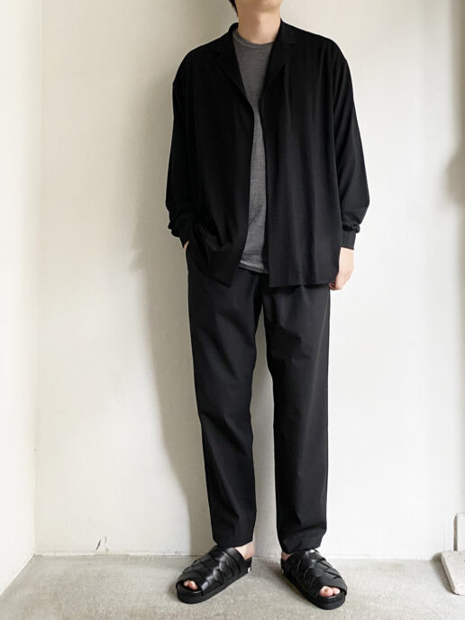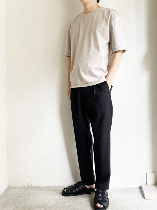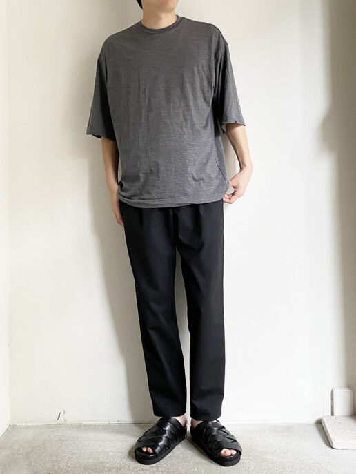 程良くゆとりのあるシルエットだがドレープの効いた生地の為、落ち感がありスッキリ見えます。