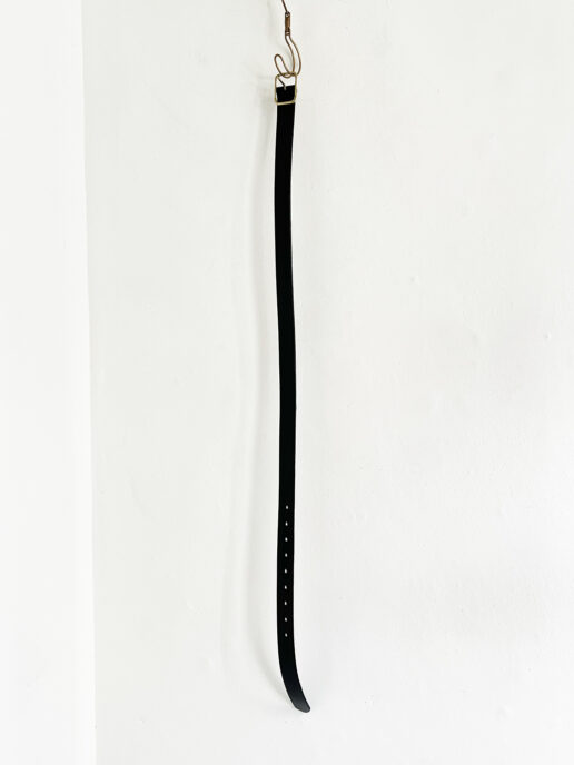 ヴィンテージ加工した真鍮のバックルがアクセントになるベルト。