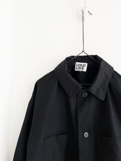 全体にゆったりとしたサイズ感に、ジャケットのようなラペルが付いた首元。