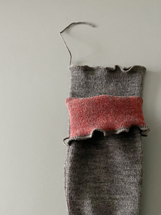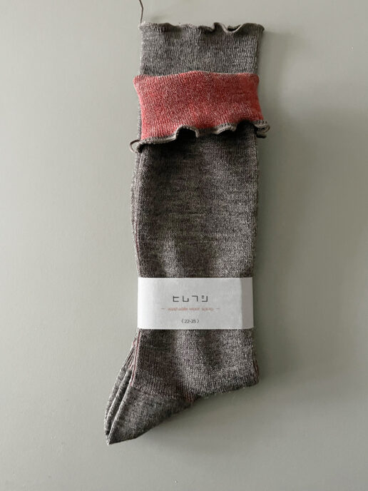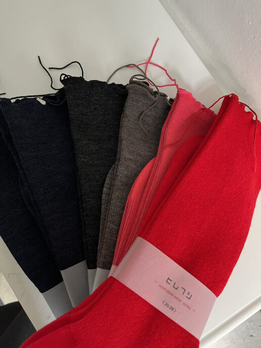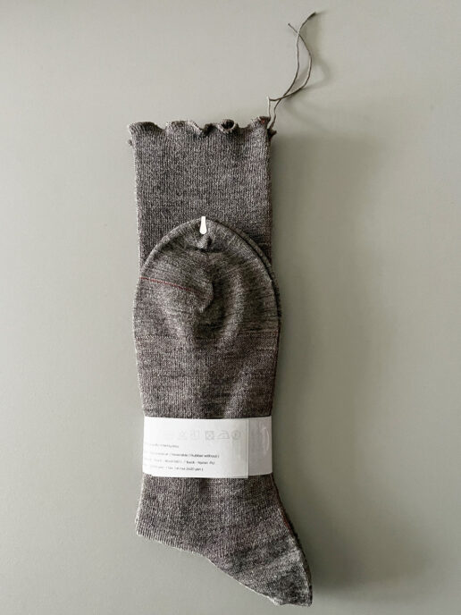 ※ 履き口から出ている糸は、編み終わり糸のようなイメージでかがったメロー糸です。