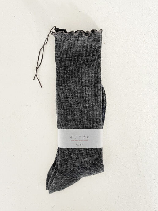 ※ 履き口から出ている糸は、編み終わり糸のようなイメージでかがったメロー糸です。