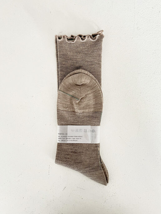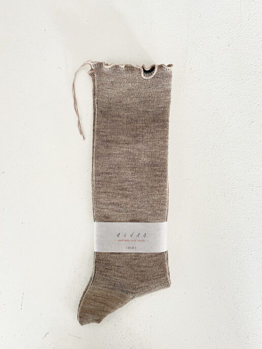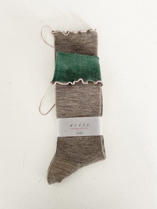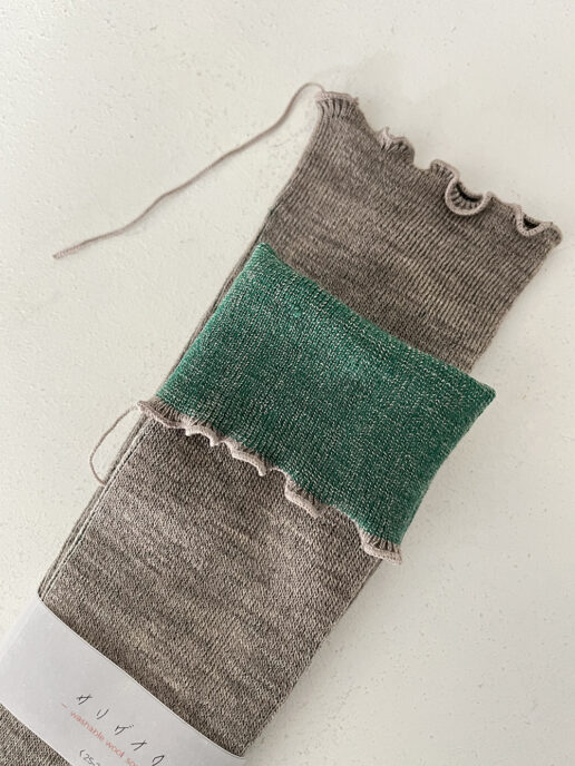 ※ 履き口から出ている糸は、編み終わり糸のようなイメージでかがったメロー糸です。