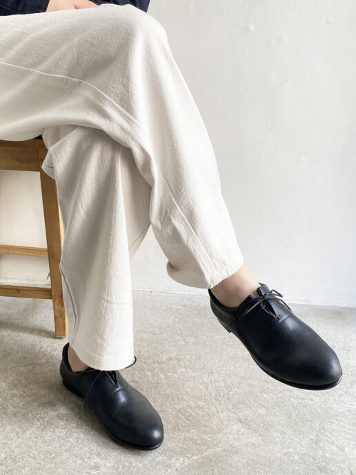 シンプルさを出すために紐穴は結ぶ部分以外は見えない仕様にしてます。