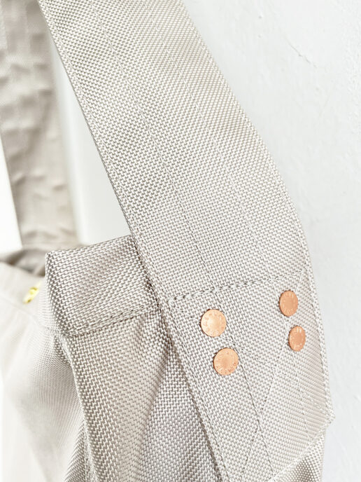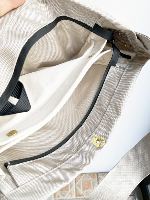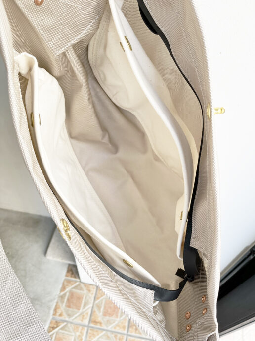 同素材で仕上げられた太めのストラップが肩への負担を軽減させてくれる計算されたつくり。