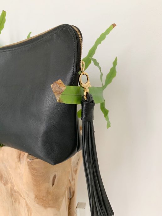 高級感のあるゴールドのジップで、フックにはタッセルが付属しています。