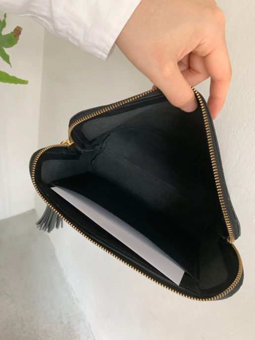 手縫いをモットーとしているCHIIから一針一針手縫いで縫われたクラッチバッグです。