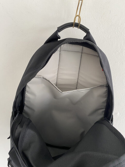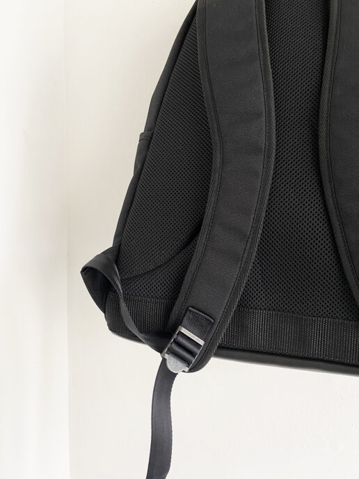 背面と肩ベルトの内側はダブルラッセルメッシュという生地。