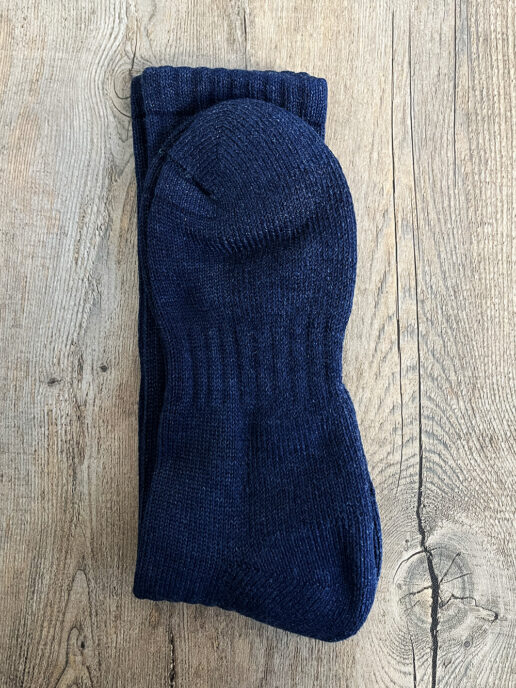 質の良いソックスを製品段階で染められたオールネイビーです。