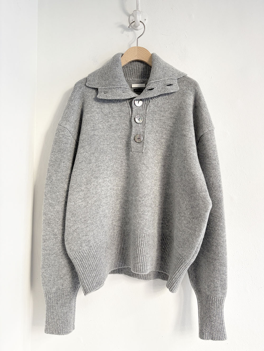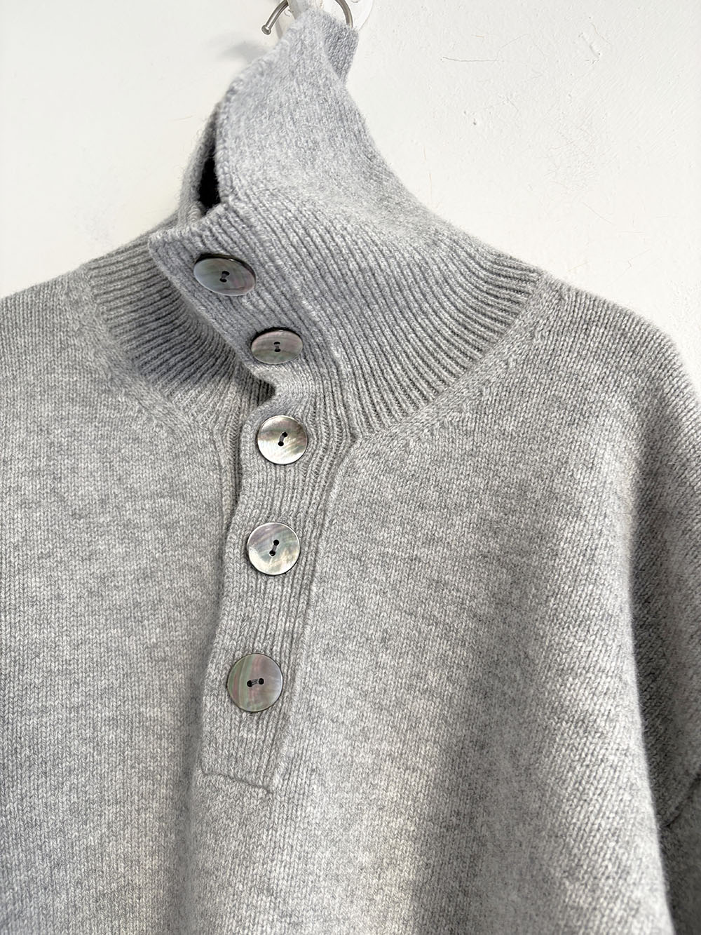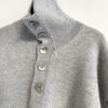 25ミリのシェルボタンと開閉によってネックラインの印象が大きく変わる仕様。