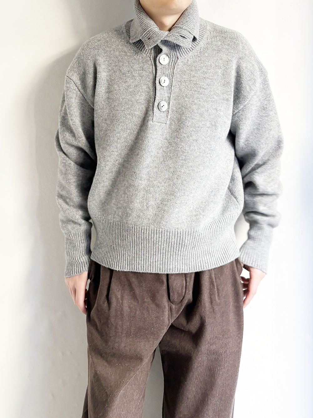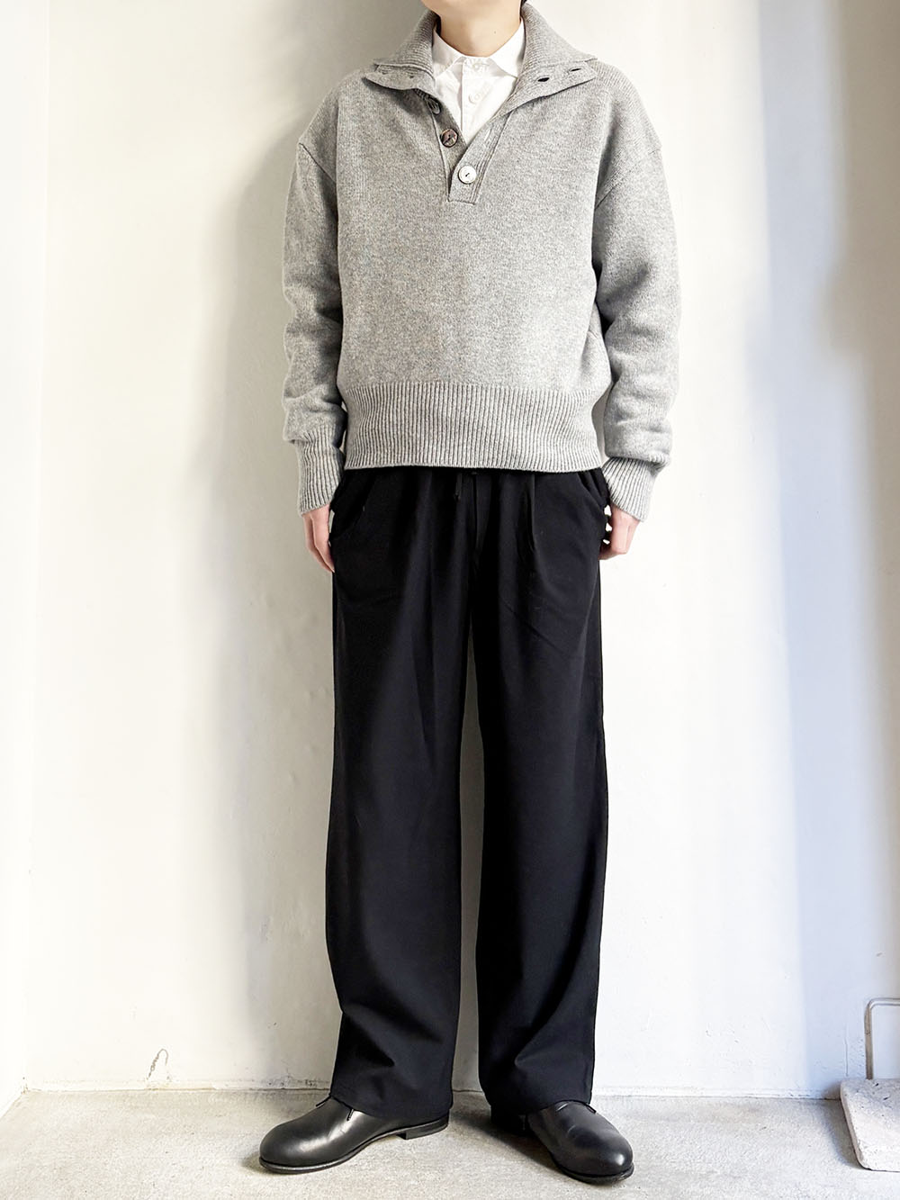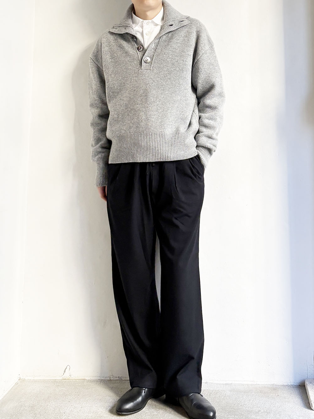ウールカシミアのリッチ感と編み立て後の巧みな仕上げにより、粗野な印象は皆無。
