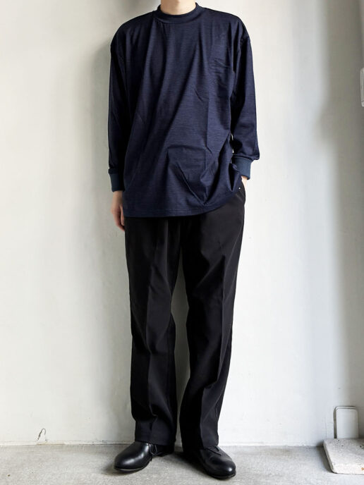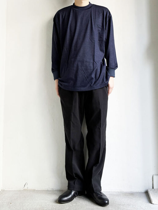 ヒップ、ワタリに程よくゆとりのあるテーパードシルエットのイージーパンツ。