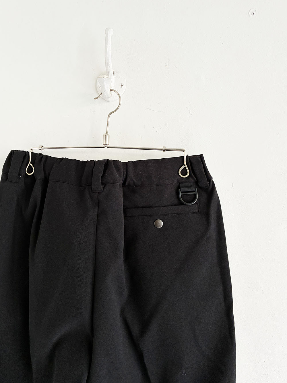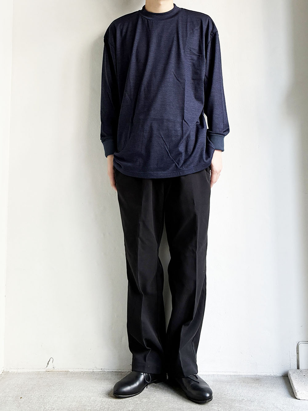 ヒップ、ワタリに程よくゆとりのあるテーパードシルエットのイージーパンツ。