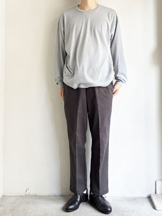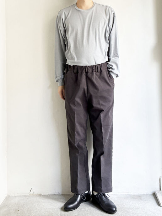 ヒップ、ワタリに程よくゆとりのあるテーパードシルエットのイージーパンツ。
