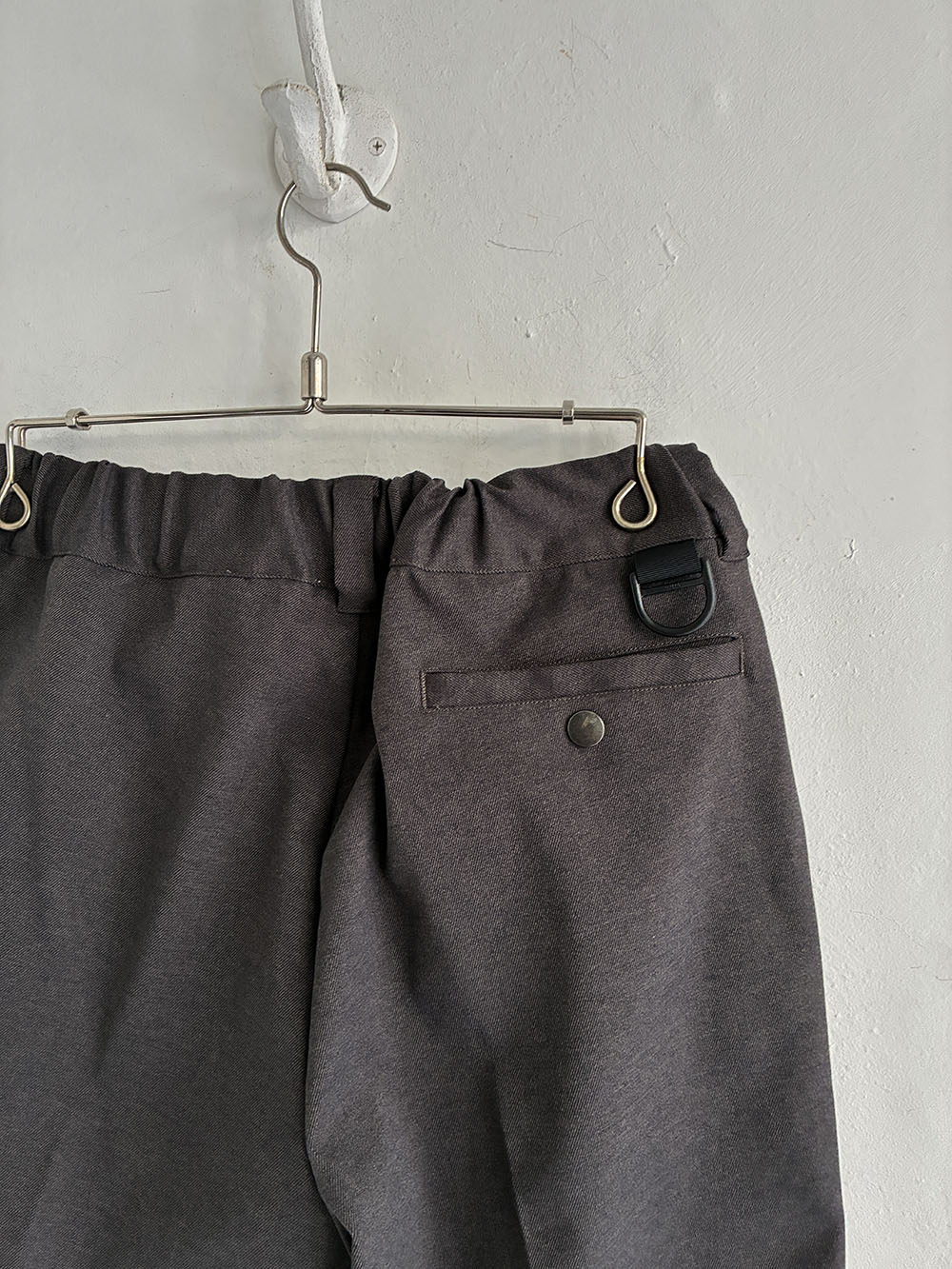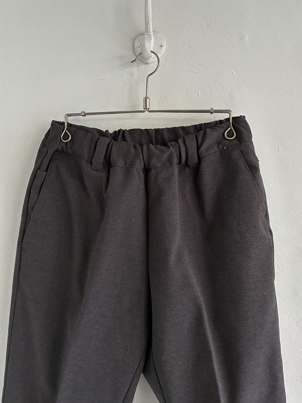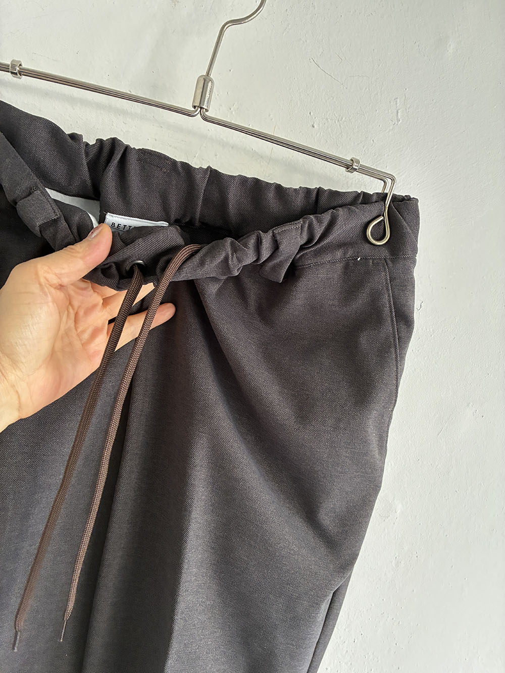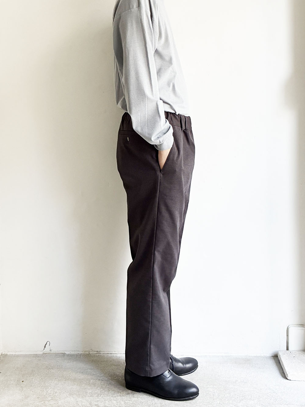 ヒップ、ワタリに程よくゆとりのあるテーパードシルエットのイージーパンツ。