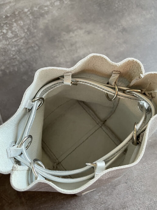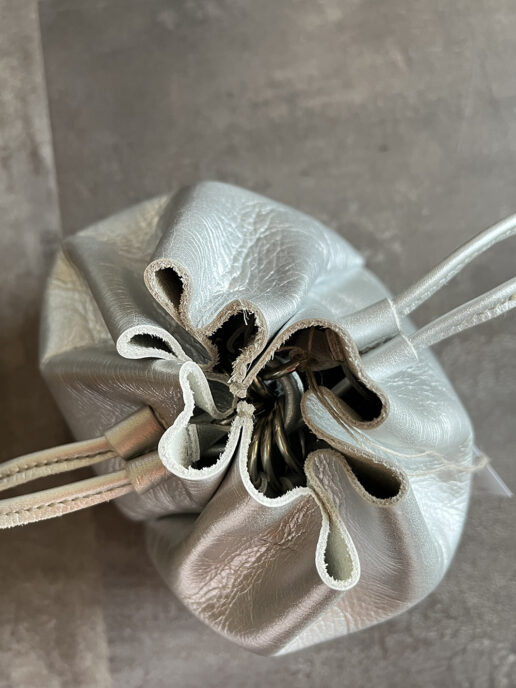 squeeze bag は中に金具を取付けそこに紐を通しております。