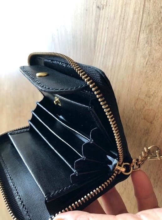 ファスナーの開閉がしやすいように持ちやすいアンティーク調のチェーンが付いています。