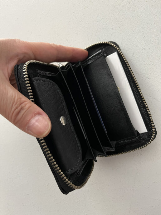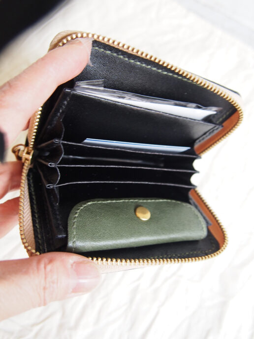 中はお札などを4折に入れて頂くポケットフタ付きポケットとの間にカードなどを入れていただける箇所が4つあります。