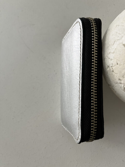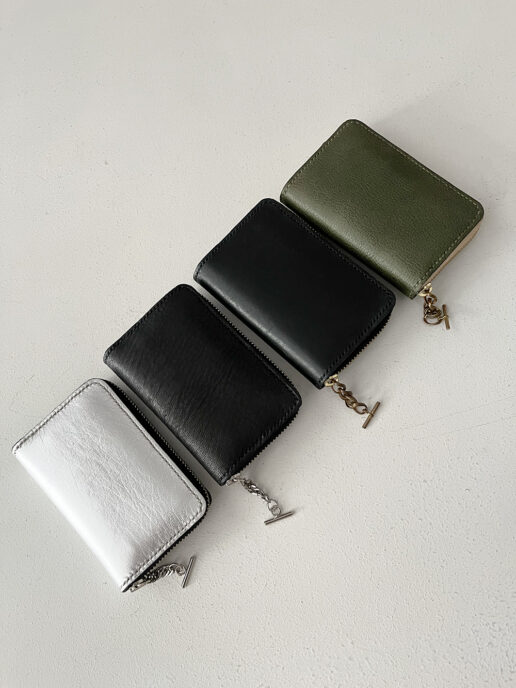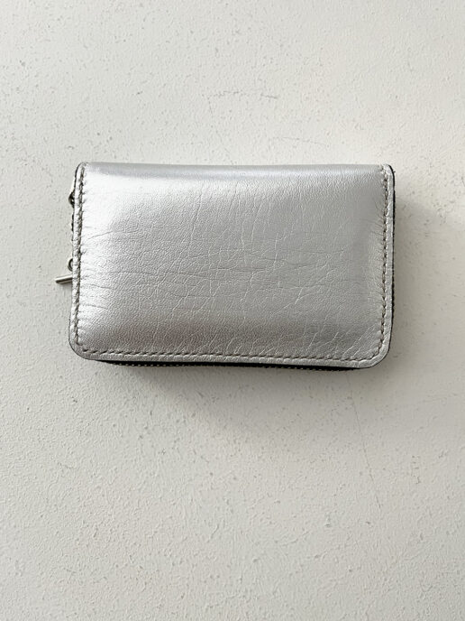 牛革のシルバーは華やかな印象、柔らかなレザーはシボ感があり表情豊かです。