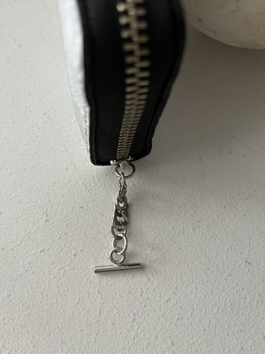 ファスナーの開閉がしやすいように持ちやすいアンティーク調のチェーンが付いています。
