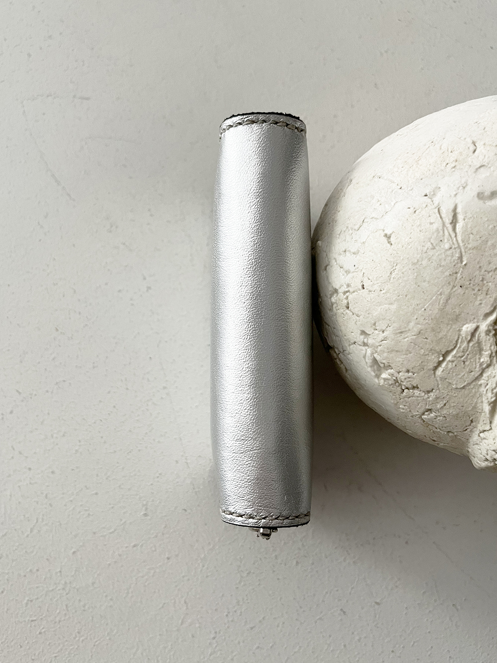 牛革のシルバーは華やかな印象、柔らかなレザーはシボ感があり表情豊かです。