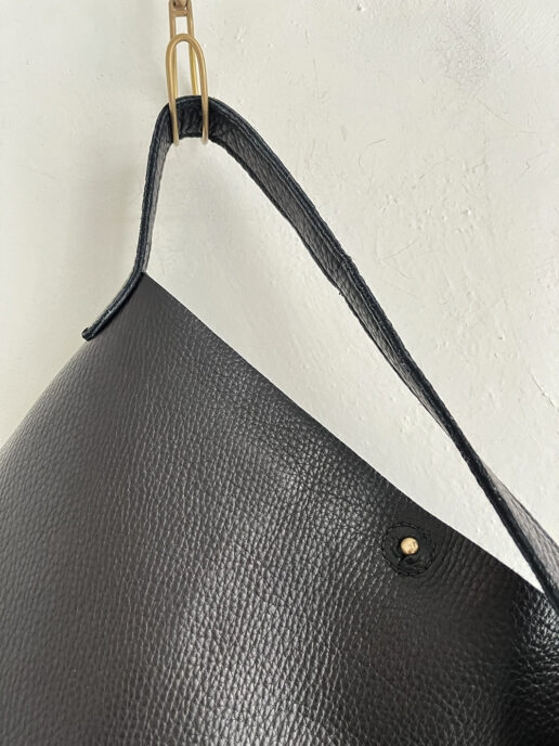 テレコに付けられた短めの持ち手は、手提げにしてもちょこんと肩にかけてもバランス良く収まるサイズ感です。