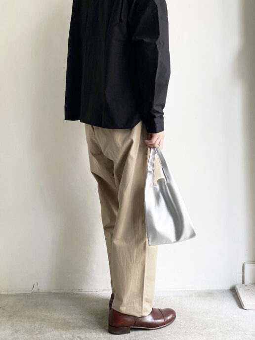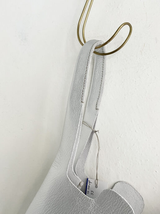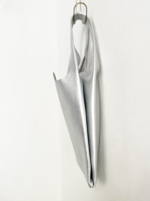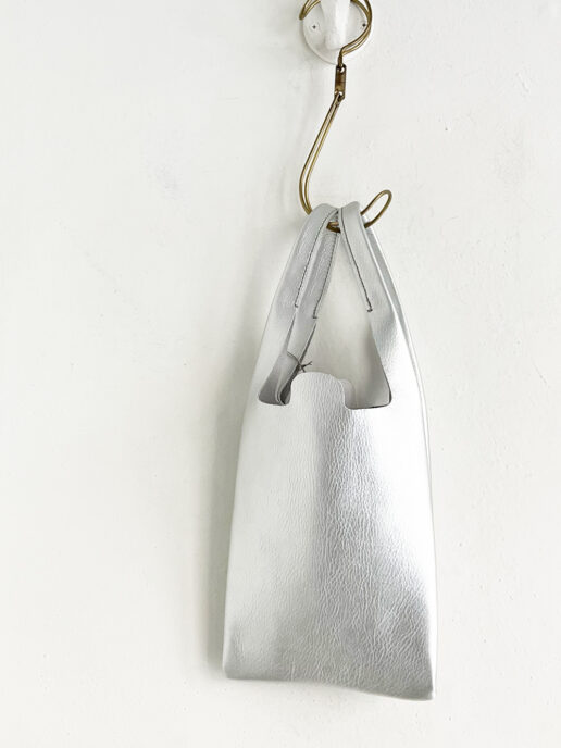 牛革のシルバーは華やかな印象、柔らかなレザーはシボ感があり表情豊かです。