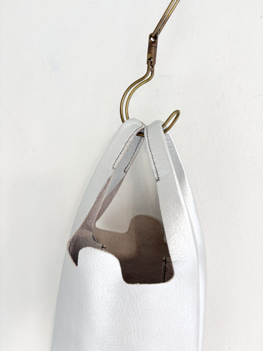 牛革のシルバーは華やかな印象、柔らかなレザーはシボ感があり表情豊かです。