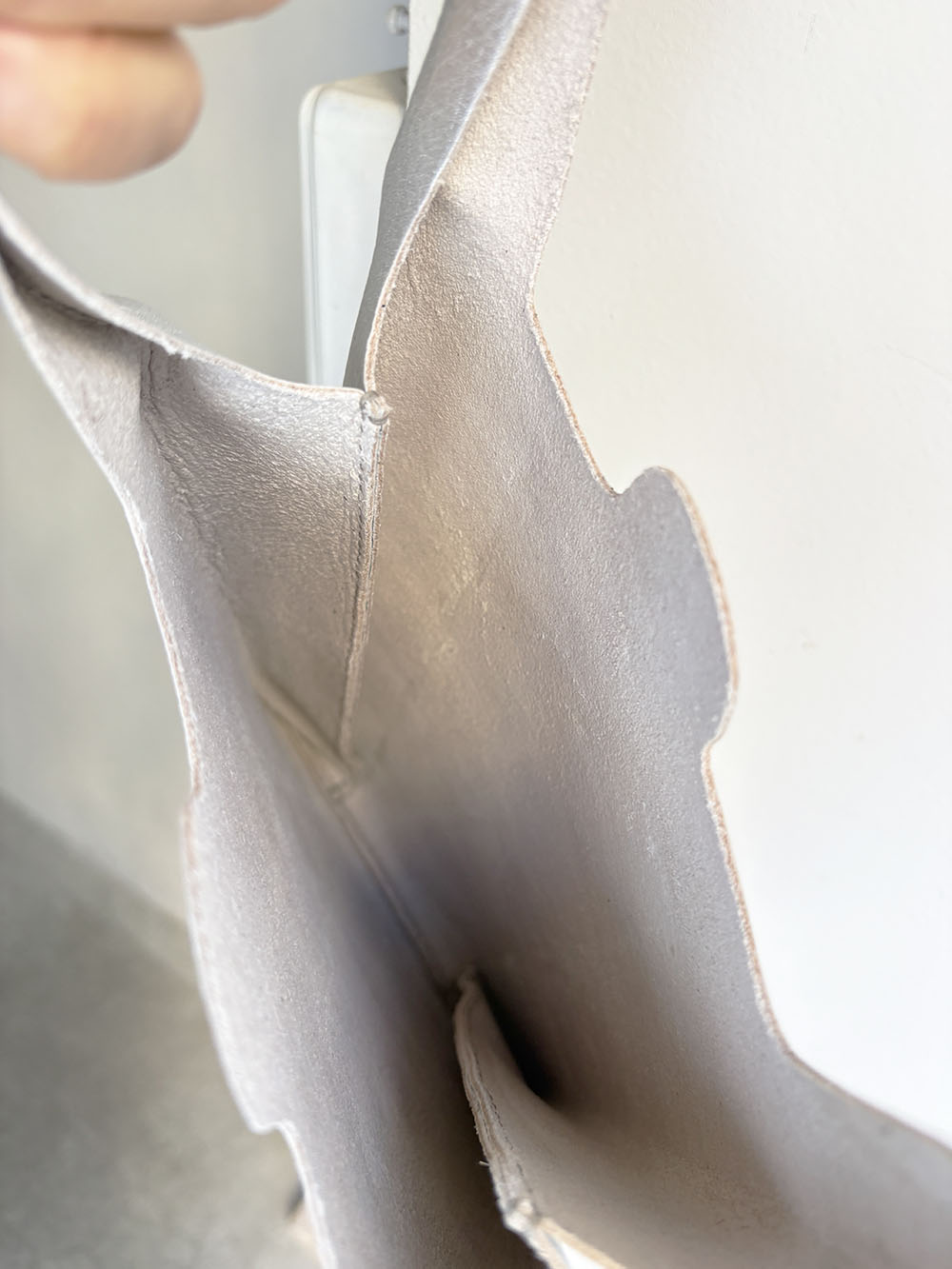 コンビニのレジ袋を忠実に革で作ったバッグです。