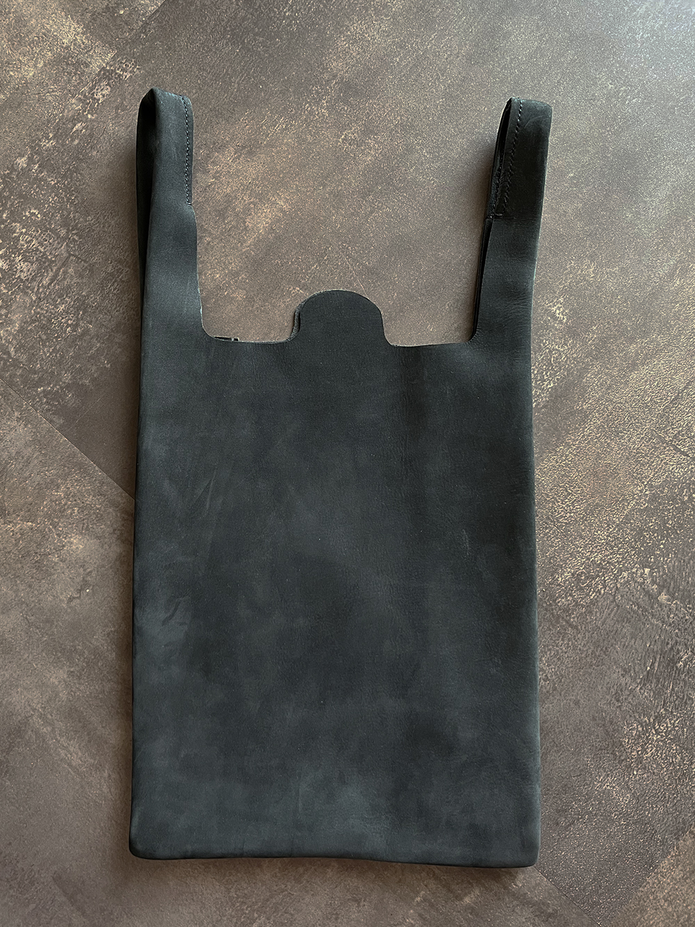 コンビニのレジ袋を忠実に革で作ったバッグです。