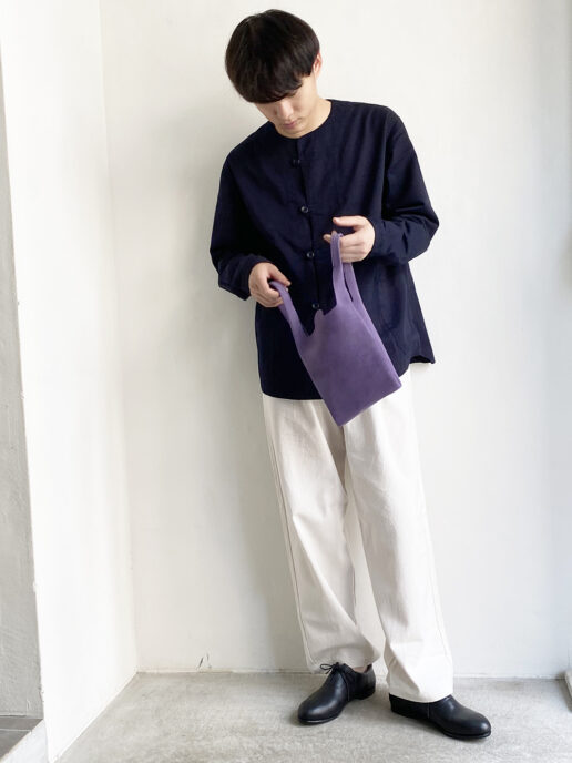 ヌバックレザーで仕立てたしっとりとした素材感です。