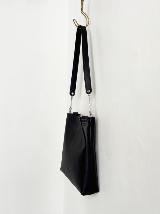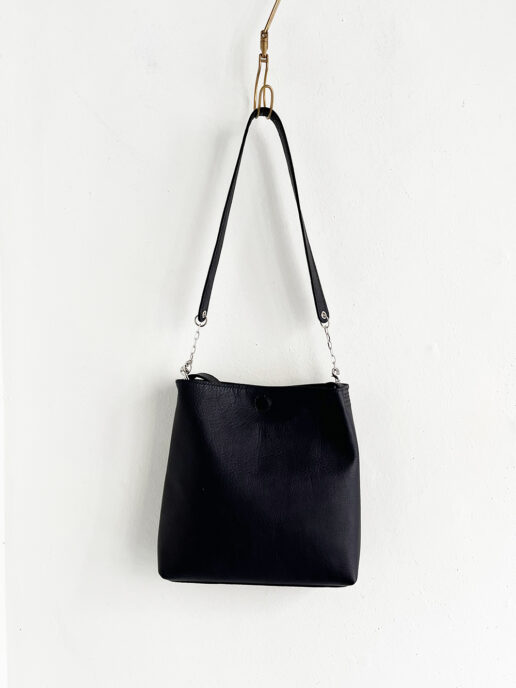底はしっかりマチがつけられ、付属のチェーン付きハンドルで自由に長さが調節できます。