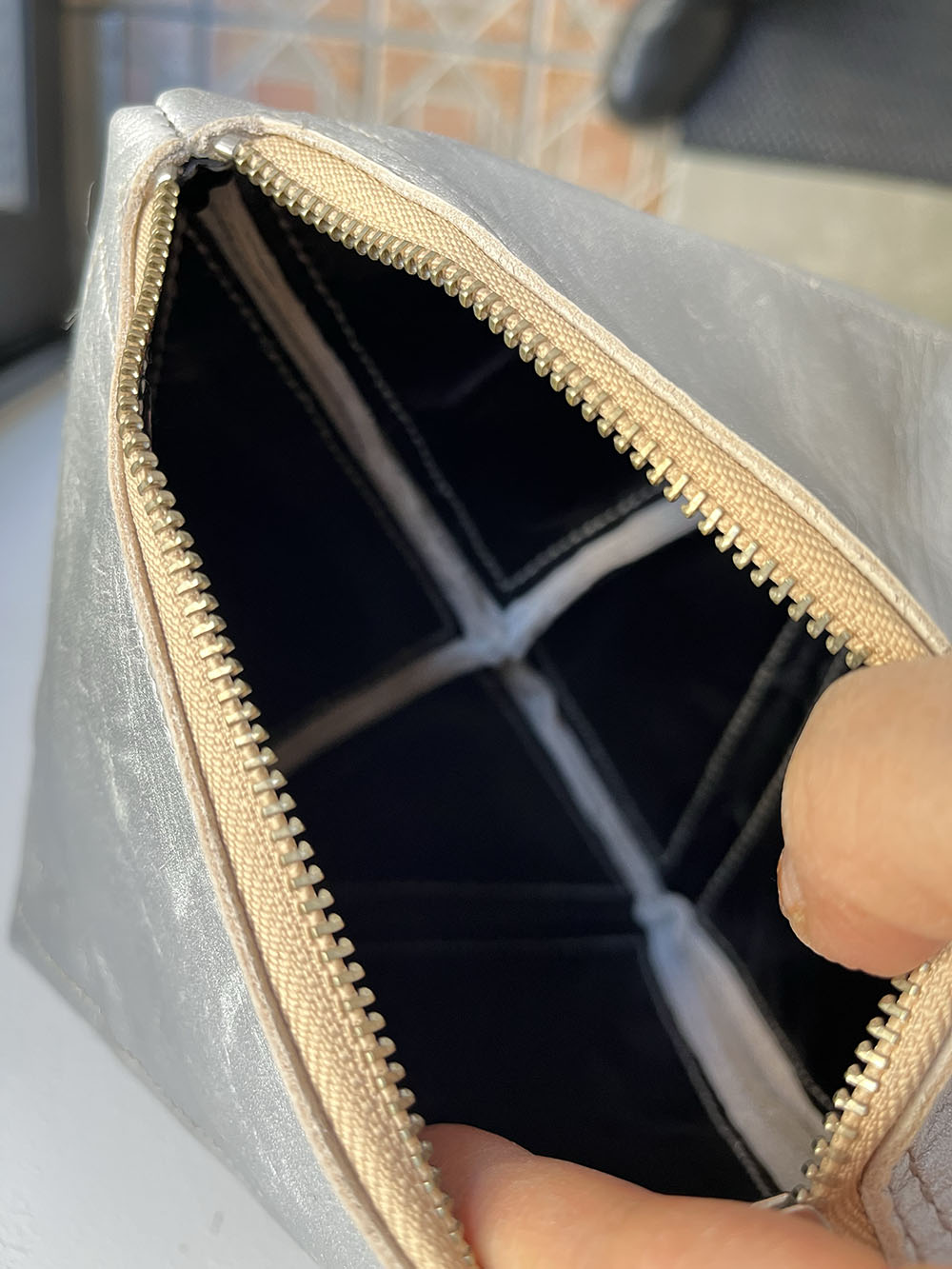 Chiiのバッグは、針穴を開けるところから、一針一針手縫いで制作されています。