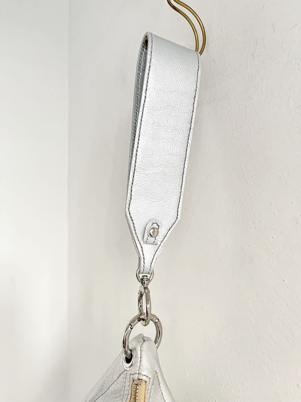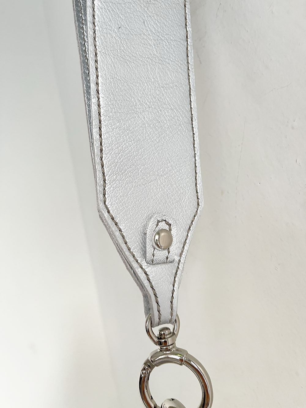 金具が外側に開くので、金具さえ合えばお手持ちのショルダーベルトやチェーンに付け替える事も可能です。