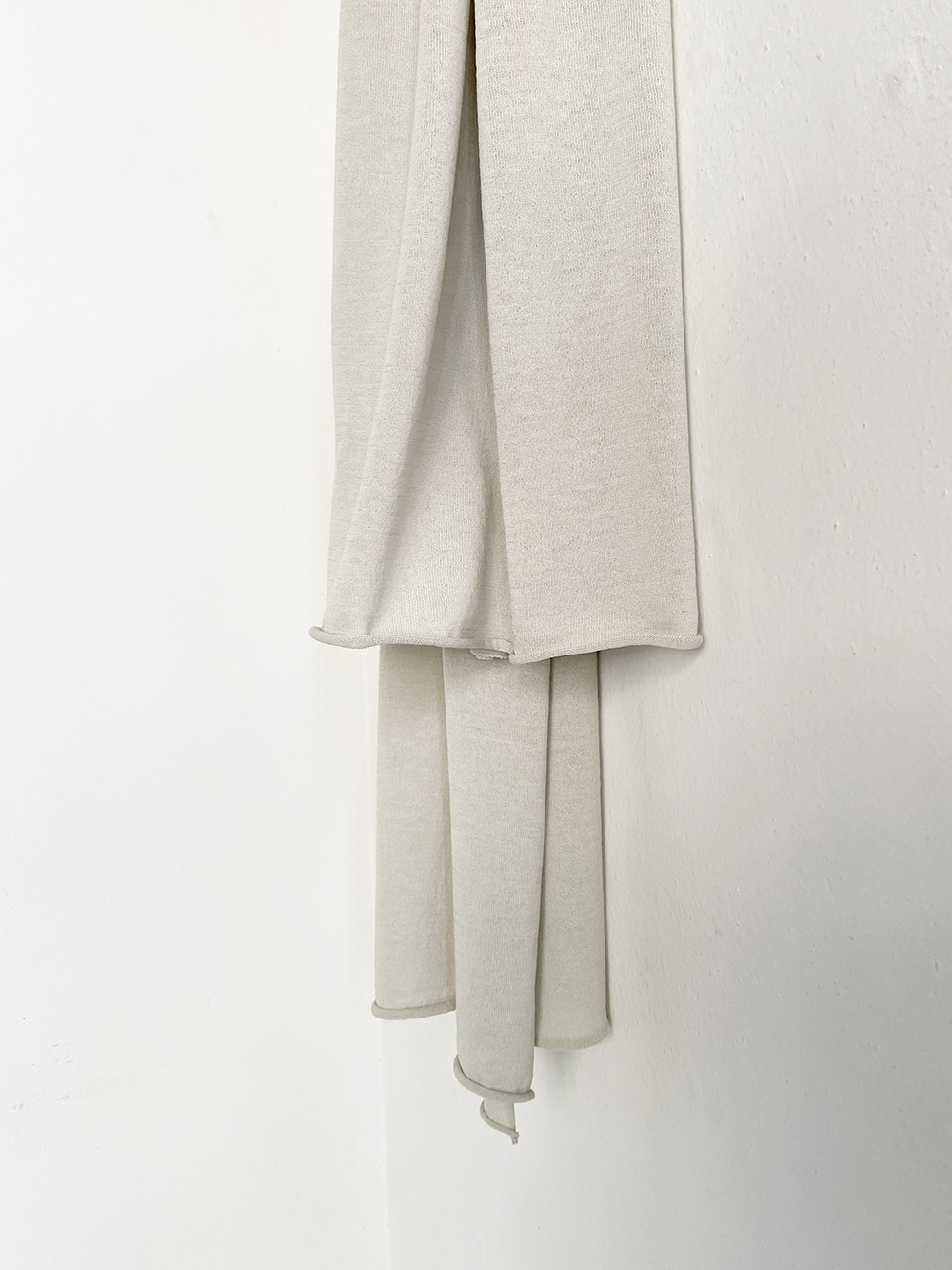 長時間水に浸けたり、濡れた状態で放置すると、素材の特性上斜行する可能性があります。お洗濯の際はご注意ください。斜行が起きた場合は、お洗濯後に十分に脱水をし、形を整えてから十分に乾かしていただくと斜行が少なくなります。お洗濯による斜行を回避されたいお客様には、ドライクリーニングを推奨いたします。
