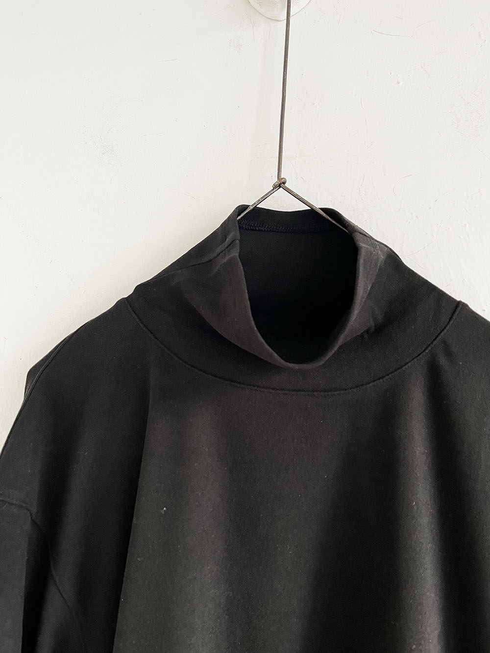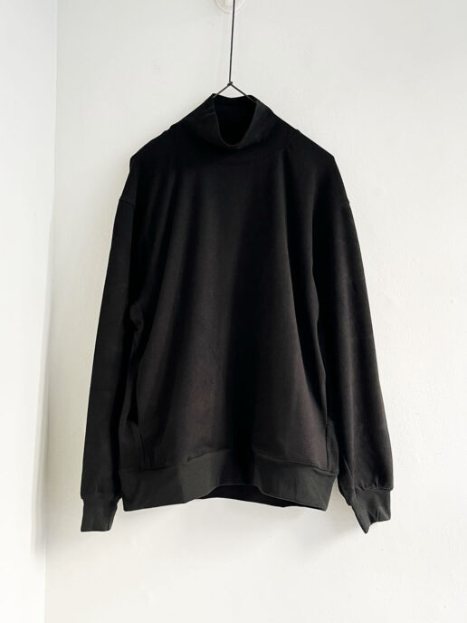 生地の持つ落ち感光沢感が上品な印象と肌触りの良い着心地が特徴のハイネックカットソー。