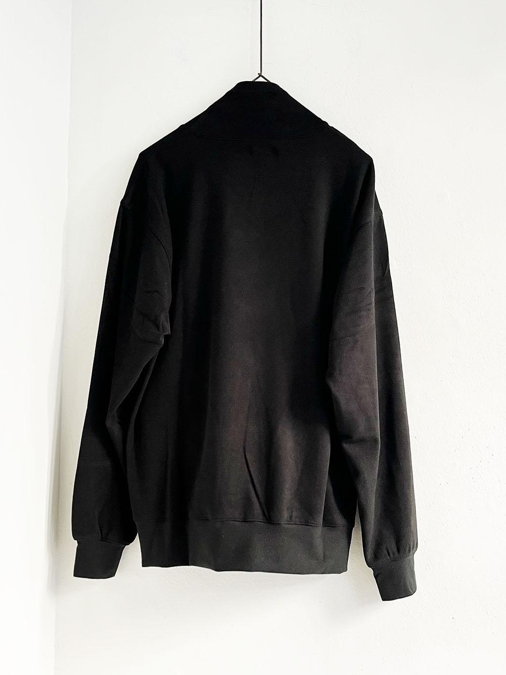 ネックの高さを前が長く後ろを短く設定することで、タートルネックとモックネックを調和させたような独特なネック周りに仕上がっています。
