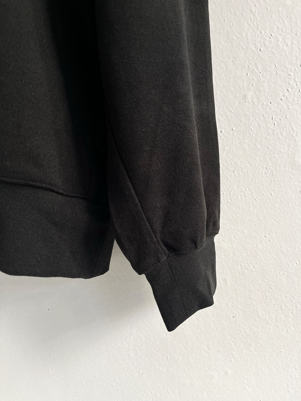 裾リブ、袖リブのスウェット風デザイン。サイドにシームポケット付き。