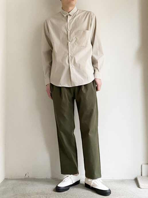 腰回りにゆとりがありながら無駄のないキレイなシルエットはシューズも選ばず万能なパンツです。