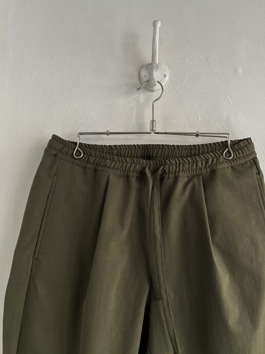 程よいハリ感があるコットンライクな高機能ポリエステルを使用したチノ素材。