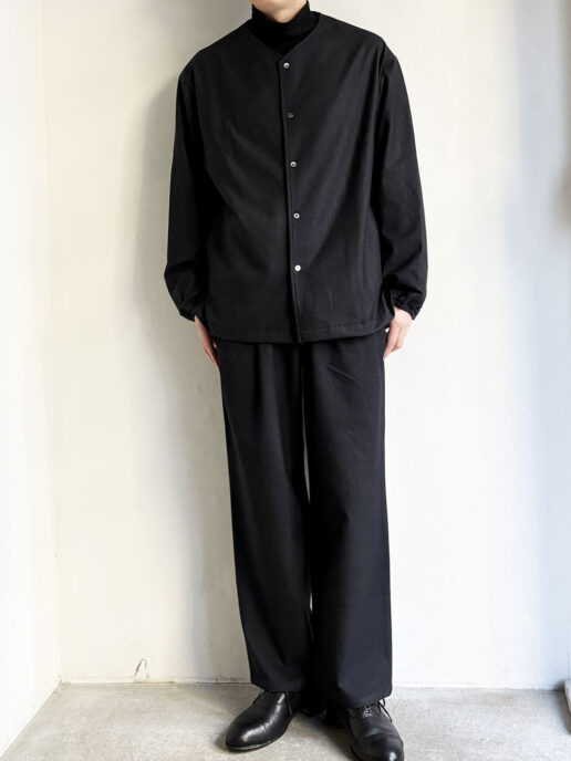 厚みを抑えた微起毛で柔らかい生地を使用した一重のシャツ感覚で着られるデザイン。