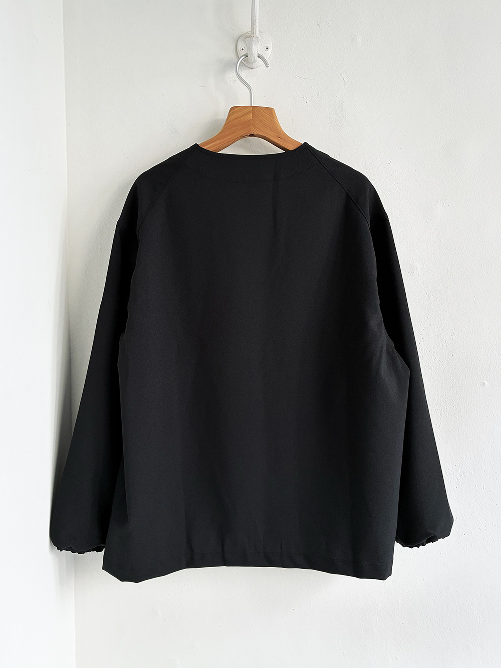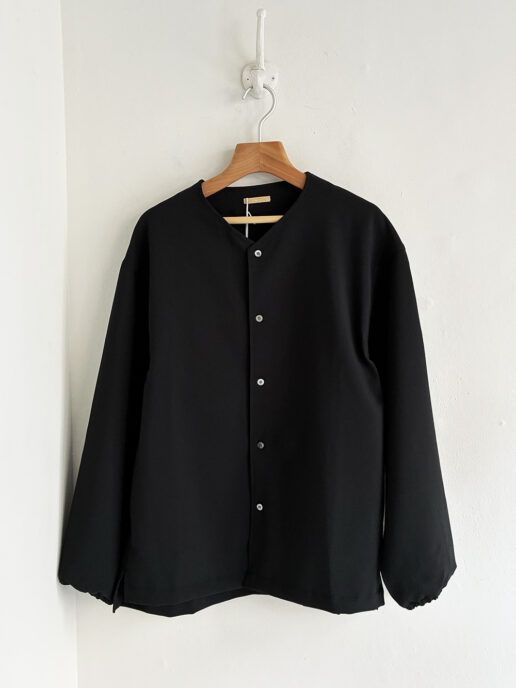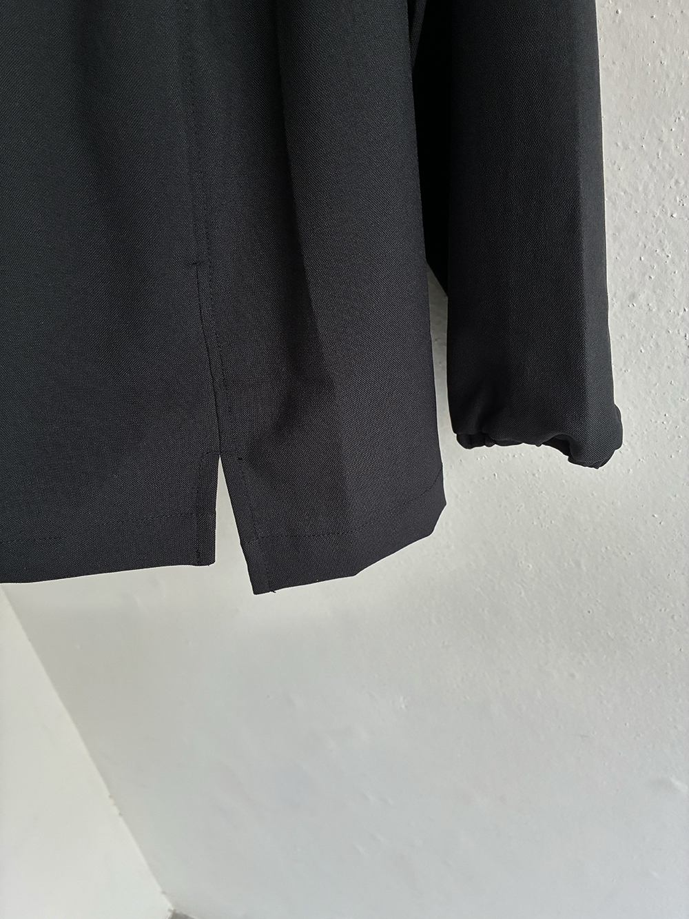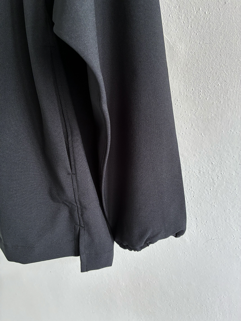 ドライタッチでサラッとした軽量のポリエステル生地を使用した一重のシャツ感覚で着られるデザイン。
