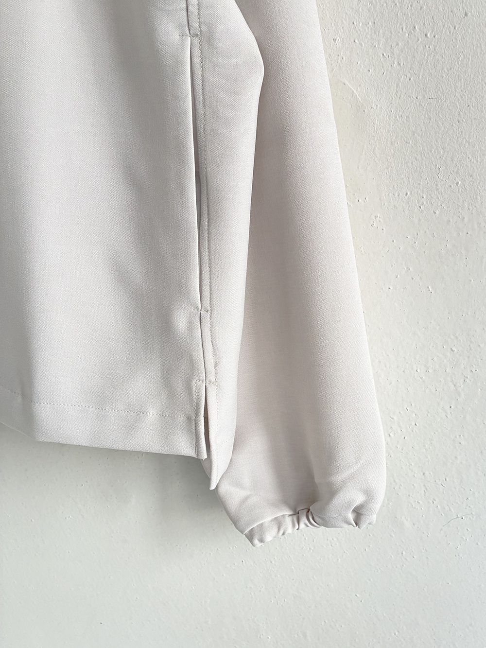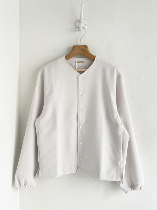 ドライタッチでサラッとした軽量のポリエステル生地を使用した一重のシャツ感覚で着られるデザイン。