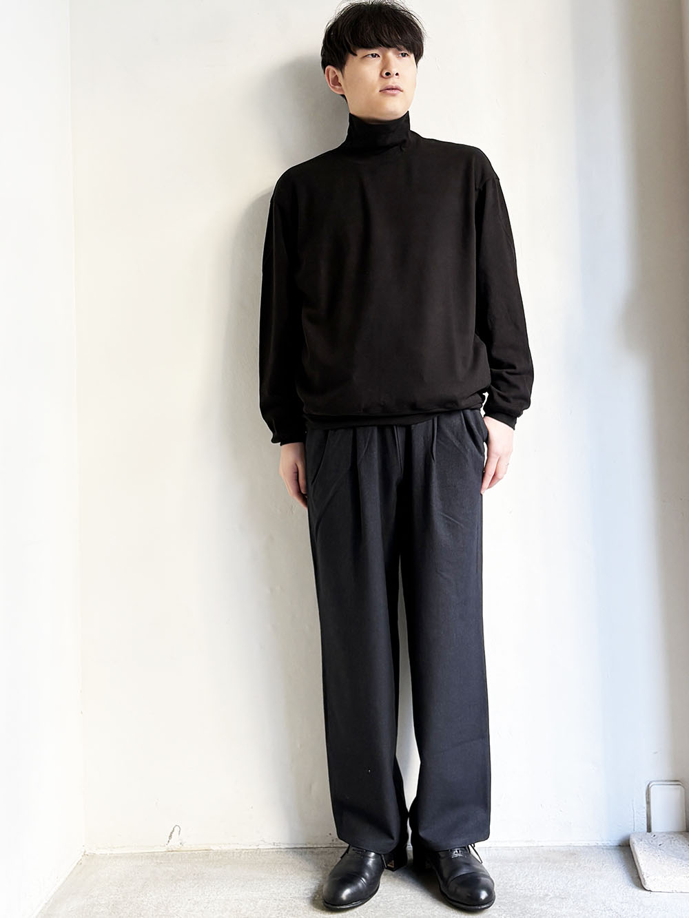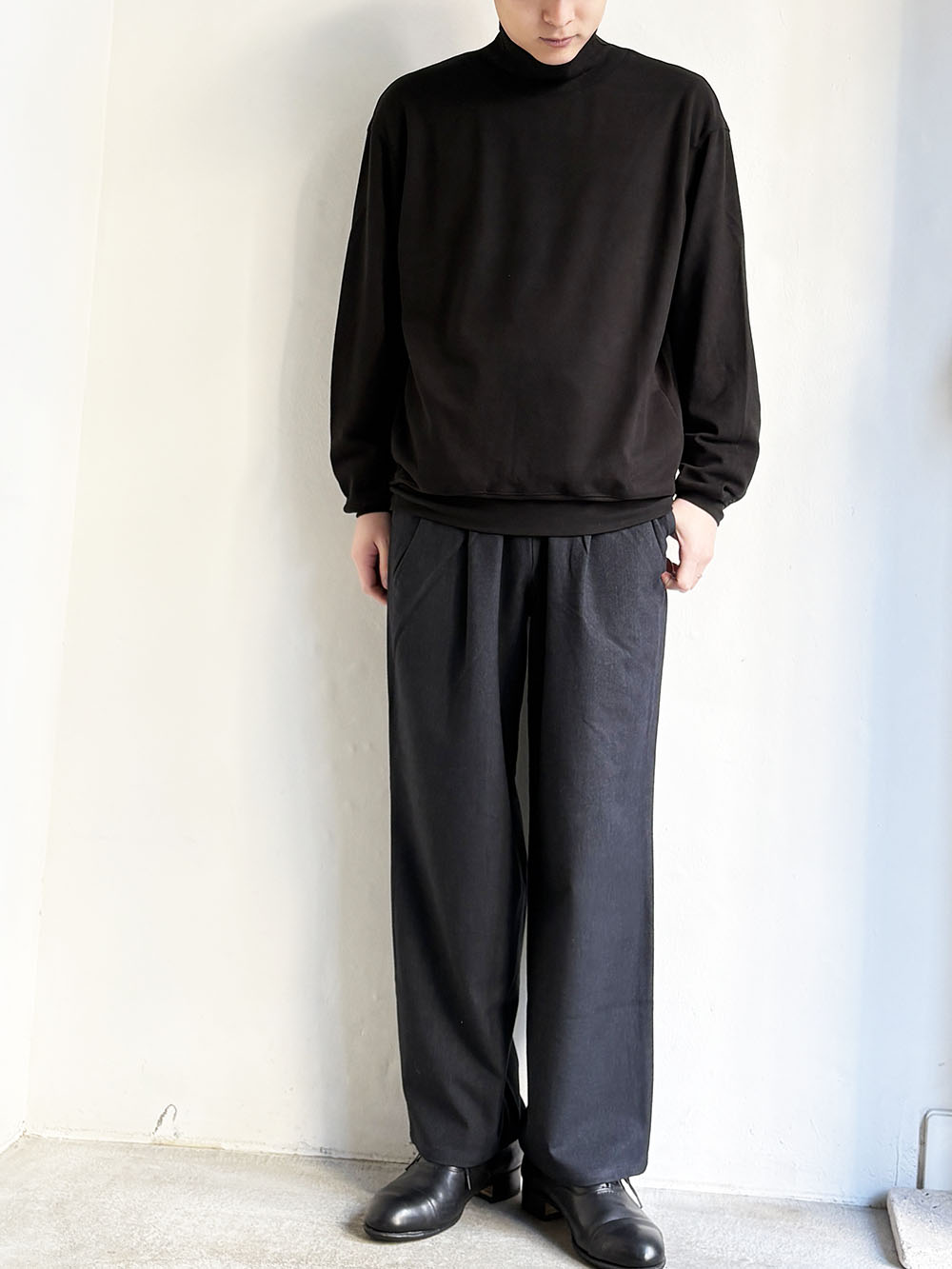 2タックの太すぎないセミワイドシルエットで裾はわずかにテーパードシルエット。