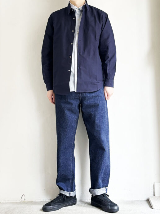 着丈、肩幅、身幅にゆとりをもたせながら、だらしなく見えない様にバランスを計算したシルエット。